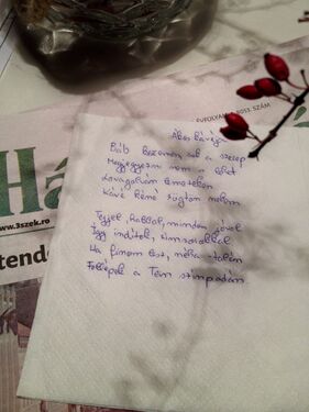 A költészet világnapja alkalmából ugyanis a sepsiszentgyörgyi Tein Teaház sajátos kezdeményezéssel rukkolt elő: a Julius Meinl Fizess verssel! kampányát kicsit továbbfejlesztve – szentgyörgyösítve! – azt találták ki, hogy aki saját verssel jelentkezik a bárpultnál, azt kávéval jutalmazzák (a Julius Meinl-féle változatban bármely költő egy strófája is elég a kávéhoz). És ha kissé döcögősen, nehézkesen is indult a versért kávé akció (délelőtt még úgy tűnt, sikertelen lesz), estére már 13 vers gyűlt össze a Teinben: legtöbben ott, helyben alkottak, többnyire „kávéremélő” témát megverselve, de akadt, aki az egykori méntelep – a hegyivadász laktanya – előtt tegnap kivágott öreg fákat siratta meg poémájában.