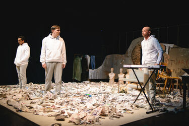 Theresia Walser abszurd vígjátékából rendkívül gazdag, összetett jelentésrétegekkel bíró produkció született Botos Bálint rendezésében. Hogy pontosan miről is szól ez a groteszkségében is szokatlanul költői szöveg, azt nehéz lenne megfogalmazni, azonban minduntalan az a kérdés merül fel a nézőben előadás közben, hogy vajon kik ezek az emberek, honnan jöttek és merre tartanak a világban.