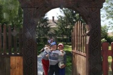 Boldog diákok a martonfalvi iskola kapujában