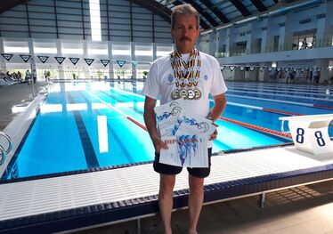 Nagy Mihály, a sepsiszentgyörgyi Ciprian SK sportolója az öt bajnoki aranyérem mellett négy román rekorddal zárta az elmúlt hét végén Târgoviștén megtartott veterán országos úszóbajnokság 65–69 éves korosztályának küzdelmeit.