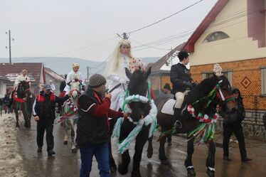 Első pillanatban megállapíthattuk, az eseményt szervezők elérték céljukat, hiszen a fejkendővel cicomázott és krepp-papírral teleaggatott lovak és az azokat nem mindennapi ruhában megülő fiatalok meglehetősen furcsa képet festenek – látványuktól minden bizonnyal megijed és eliszkol a tél. A lakodalmas menet – mert az alakoskodók azt jelenítik meg – elején a székely ruhába öltözött vőfély áll, kezében vőfélypálcával.