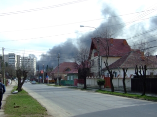 A minap kilépek a kapun, nézek előre, semmi, nézek jobbra, semmi szokatlan. Ám, amikor balra nézek, egy nagy füstfelhőt látok. Talán valami uniós szabványoknak fittyet hányó, környezetvédőkkel packázgató háztáji szemétégetésnek vagyok a szemtanúja? Aztán rájöttem, hogy az nem ilyen látványos, ez viszont szinte a város túlsó feléről is látható, úgyhogy megörökítettem. A másnapi Háromszékben olvastam, hogy nem szemétégetés, s még csak nem is egy euro mínusz 3-as motorú Trabanttal kísérletezgettek, hanem egy szemerjai épületnek lángolt a teteje.