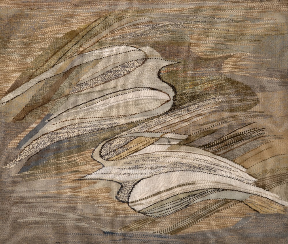 Simó Enikő Szárnyalása nem véletlenül szerepel a tárlatot kísérő katalógus borítóján. A vékony cérnaszálakból szőtt kép felívelő madárkompozíciója jelképiségében nagyon pozitív. Grafikus vonalak árnyaló finomsága, festői tónusok gazdagsága és a fonal ritmusa emeli ki szépségét.