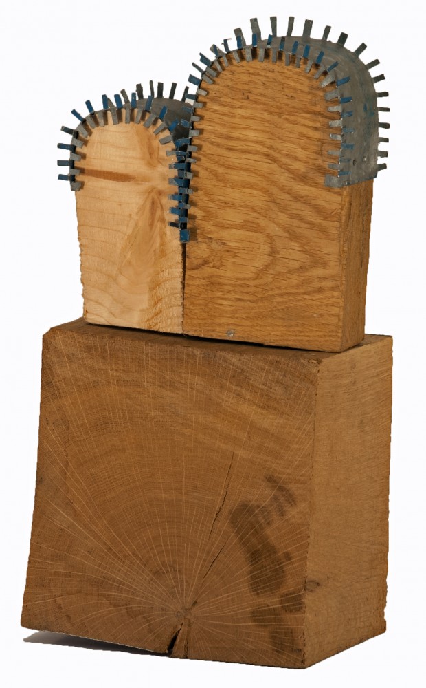Mitől műalkotás Péter Eszter Lelkek kapuja című képe? Az egyszerű formák monumentális hatásától, színek összhangjának varázsától és az anyaghasználat bámulatos merészségétől válik műalkotássá. A kiállítás szerencsés elrendezése, hogy az előbb említett kép előtt helyezték el Éltes Barna Összetartozás című faszobrát. A bádogtetővel védett fejfák miniatűr imitációja az örökségben a végeérhetetlen nyitottságot teszi láthatóvá. Nem aprózza fel gondolatait stilizációval, nem rejtőzködik túlfaragott jelképek mögé. Mértéktartása hitvallás, amely visszautat jelez abba időbe, amikor még a világ mértéke a rend volt. A népművészet kortárs művészetben való megidézése számomra ilyen formában életképes. Szókimondó és tömör bölcseletet tartalmaz.
