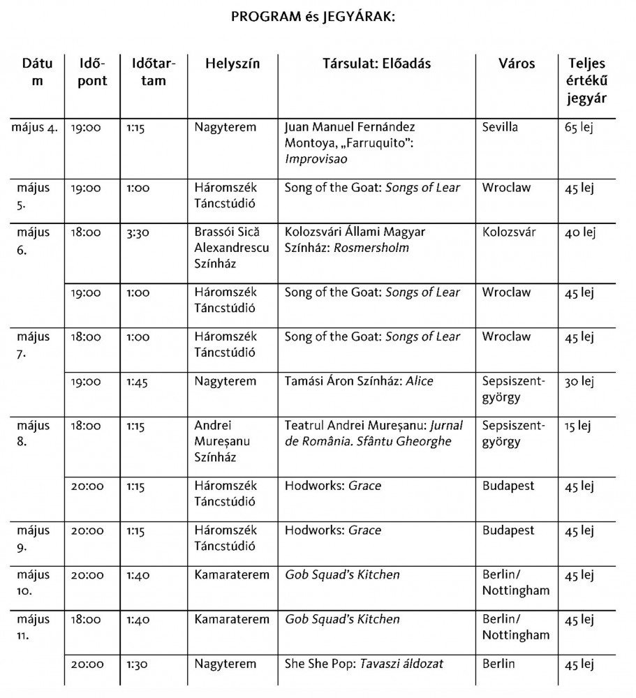 Szakmai jegyekre a kérelmeket a színház titkárságán, Erdély Ágnesnél lehet előjegyeztetni április 8-án éjfélig az office@tasz.ro címen. Ebben a kedvezményben igazoltan színházi szakmabeliek részesülhetnek. A fesztivál vezetősége a rendelkezésre álló helyek bizonyos százalékát tartja fenn erre a célra.