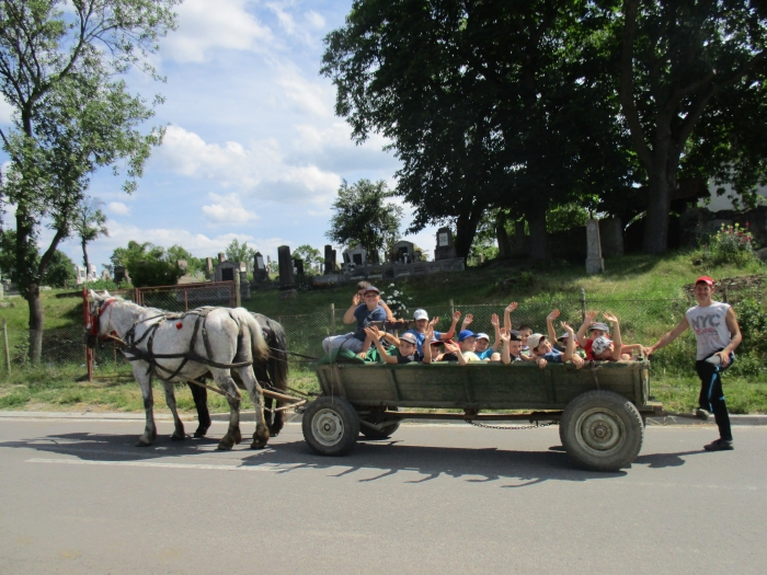 A helybeli Vass Panzió udvarán is népes gyereksereggel találkoztunk, akik lovas-szekeres kiránduláson ismerkedtek a faluval és annak közvetlen környékével.