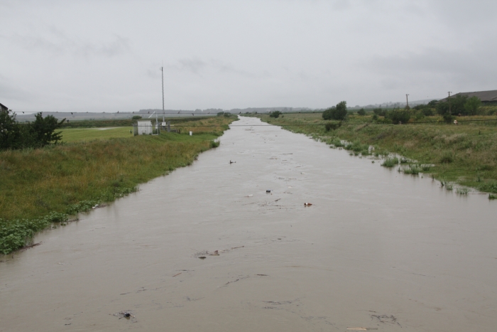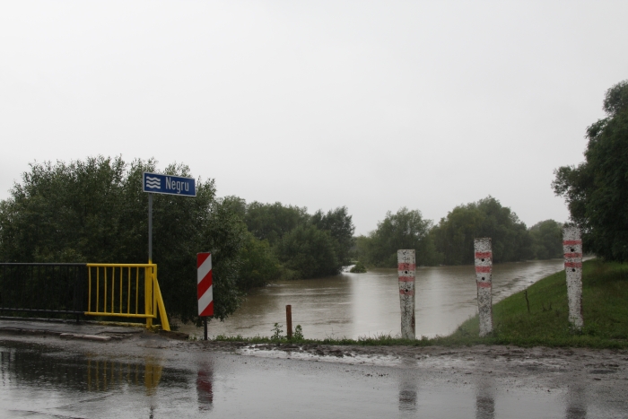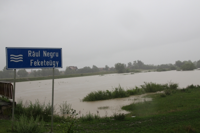A vörös árvízriadó elrendelése után szombaton kora délután végigjártuk a Feketeügy orbaiszéki és alsóháromszéki szakaszát. A víz szintje jelentősen növekedett ugyan, de nagyjából csak a védőgátak közötti árterületet árasztotta el helyenként. Bácsteleknél viszont vészhelyzet volt: nem a Feketeügy, hanem a helységen átfolyó Tatrang pataka öntötte el a falu felső részét.