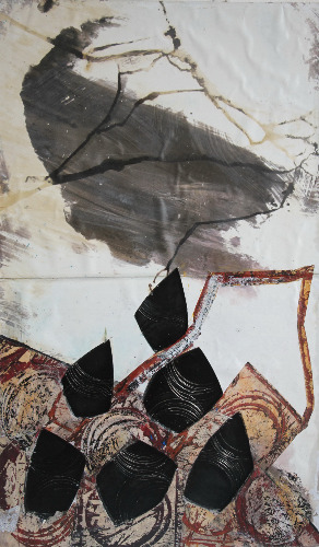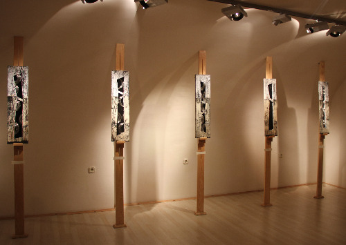 Régi fotók idők által megsebzett nyomatai, gyűrött ráncok a papírok, kartonok ércfalán, körkörös szenvedéllyel konstruktív létenergiát közvetítő drótok-huzalok, az akril színvisszacsengését megszenvedetten is szemérmes vallomásokká emelő vásznak – mind-mind kezére játszanak, hogy önkifejező bátorsággal kinyilváníthassa a világról, a sorsról, a kishazáról és a nagyhazáról, valamint a kötődés mélységéről való nézeteit.