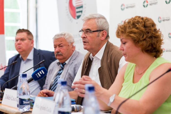 Tőkés László európai parlamenti képviselő felidézte: megrázó élmény volt számára találkozni Beke István családjával, gyermekeivel a kézdivásárhelyi tüntetés alkalmából, amellett azonban, hogy Istenhez fordulunk, minden lehetőséget meg kell ragadni az igazság feltárására. Felidézte: már a jogerős ítélet kihirdetése másnapján tájékoztatta az ügyről Antonio Tajanit, a testület elnökét, valamint levélben ismertette a helyzetet képviselőtársaival – további fejleményekig azonban meg kell várni az őszi ülésszak kezdetét. Petíciót is indítottak, ezt eddig több mint húszezren látták el kézjegyükkel, az Erdélyi Magyar Néppárt pedig a Legfelsőbb Igazságszolgáltatási Tanácshoz fordul, mihelyt az ítélet indoklását kiközlik, s kérik az ügy kivizsgálását. Emellett afféle informális válságkezelő tanács felállítására van szükség, hogy összehangoltan tudjanak fellépni jogi és politikai síkon a terrorper áldozataiért. Meggyőződése, hogy az eljárás nem csak Beke és Szőcs ellen irányul, hanem a magyar közösség egésze ellen zajlik hajtóvadászat. Azt is szorgalmazta, hogy az RMDSZ és az MPP tiltakozása jeléül, első lépésként bontsa fel az együttműködési megállapodást a szociáldemokratákkal.