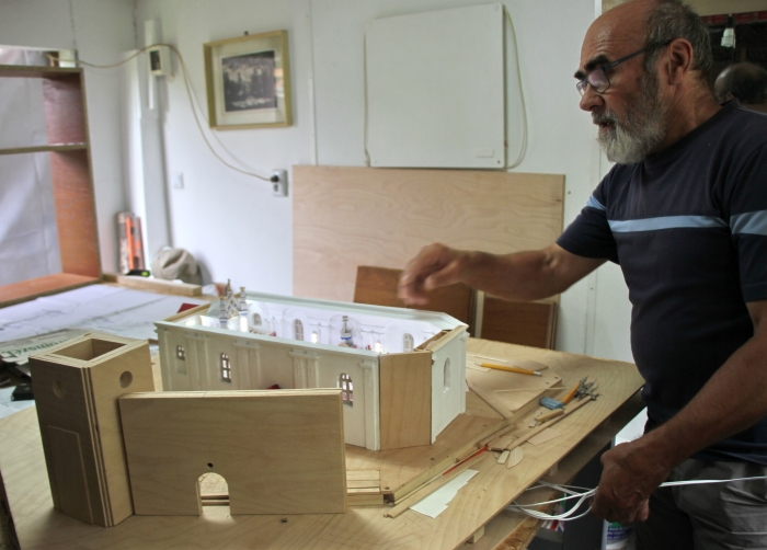 – Hozzáláttam az árkosi unitárius bástyás műemlék templomvár, a harangtorony és a templom makettjének elkészítéséhez – adta tudtunkra az épületmakettek, stadionok-arénák lelkes művészi kivitelezője, Kiss Ernő. Műhelyében tett látogatásunkkor elmondta, ez lesz az ő ajándéka, amelyet az unitárius egyház fennállása 450. esztendejének emlékére készít. A bástyás vár ki lesz világítva, a templomban is kigyúl a fény. Meglepetéssel is készül: „ha minden sikerül, megszólaltatom a harangokat”.