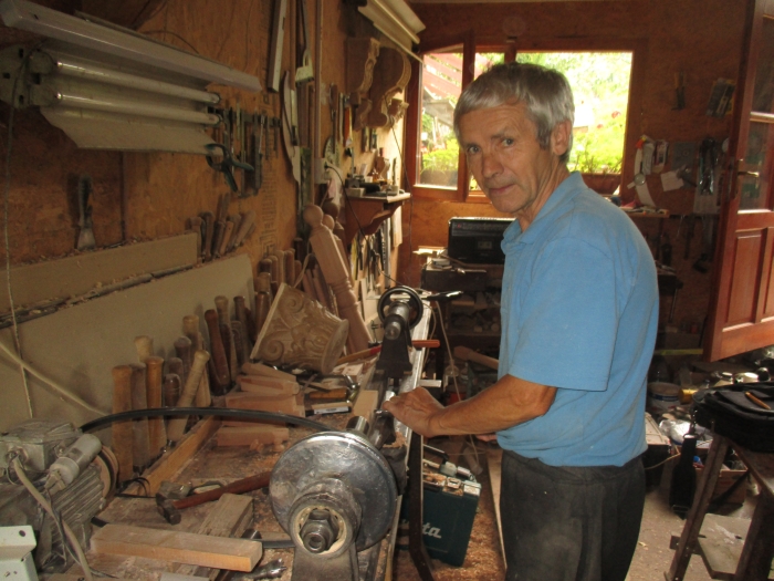 – Most éppen gombokat esztergálok kredencfiókokra, máskor lépcsőkorlát-oszlopokat – mondta –, nem kell hozza művészi érzék, de ez is munka.