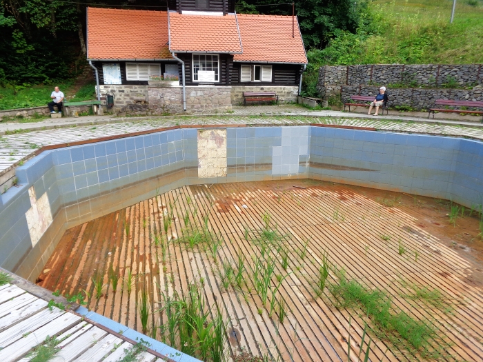 Mintha valami szellemtanyán járnánk, nem a megye egyik legnevesebb üdülőtelepén... Erre a szabadtéri medence látványa is ráerősít, amely üresen tátong előttünk, és végtelenül siralmas látványt nyújt gazzal benőtt aljával és a faláról lehullott csempedarabokkal, miközben bugyog benne a borvizes békanyál...