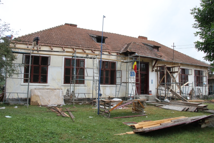 Nemcsak az évtizedek és az esőzések, hanem a gyakori árvizek is ártottak az iskola épületének. Olyannyira, hogy abban lehetetlen lett volna megkezdeni az új tanévet. Miként képünkön is látni lehet, alapos és gyors munkába kezdtek: javítják-újítják a cserépfedelet, tatarozzák a tanári szobát, a legszükségesebb osztálytermeket, új nyílászárókat szereltek.