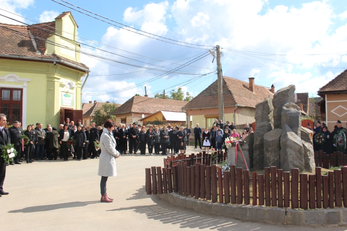 Az emlékezők a nagybaconi rézfúvósok vezetésével a szárazajtai tizenhárom mártír iskola előtt felállított emlékművéhez vonultak, ahol az IKE-sek verset és éneket adtak elő, Kelemen-Karikás Ilona pedig Wass Albert Patkányok honfoglalása című művét olvasta fel.
