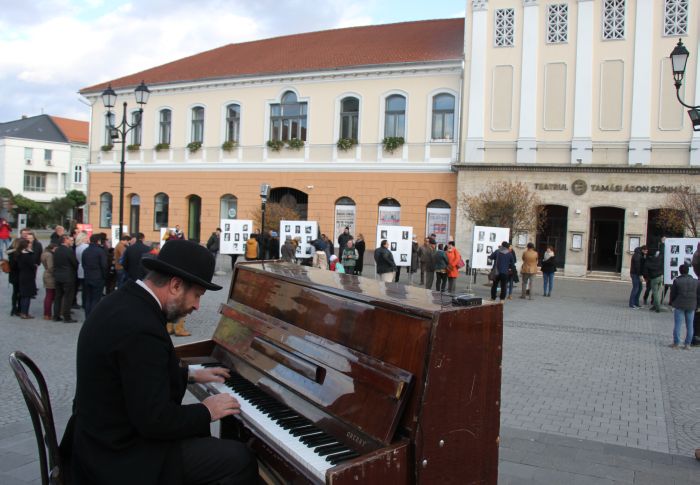 A főtéri kőszínpadon kopott pianínó állt, melyen keménykapalos, frakkos zongorista játszott, majd hatalmas pannókat cipelve sorra kiléptek az épületből a színház társulatának tagjai, és felállítottak egy kiállítást. A színház mintegy száz alkalmazottja dolgozott azon, hogy a mindenkori sepsiszentgyörgyi színészek arcképei a helyükre kerüljenek.