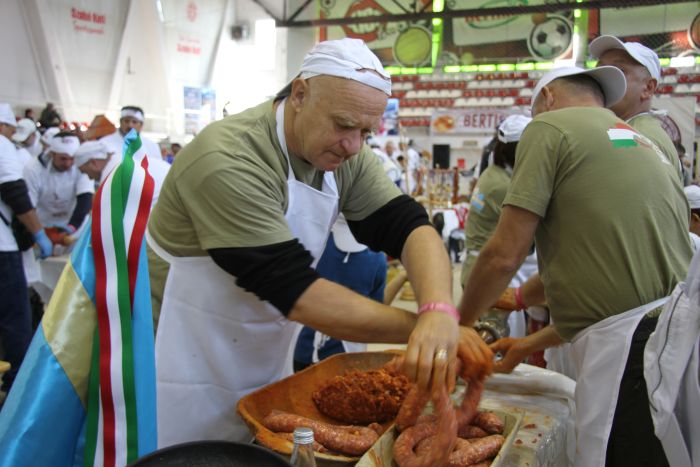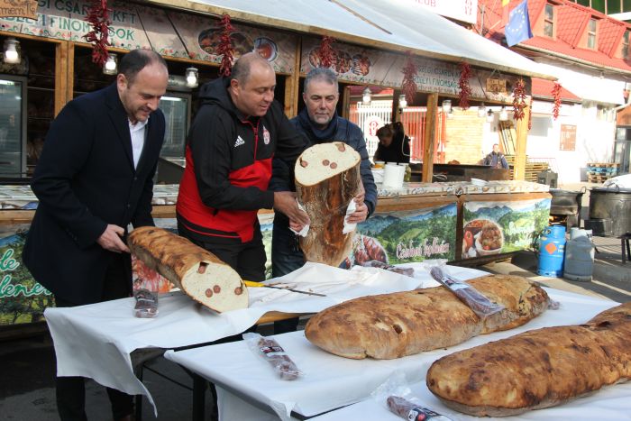 Szombat délelőtt főként a helyi és országos sajtó képviselői várták a Szabó Kati Sportcsarnok előtt, hogy Diószegi László Grüman Róbert megyei önkormányzati alelnök és Berszány Tibor társaságában végre felvágja azt a három hagyományos házikenyeret, melyet az alkalomhoz illően kolbásszal töltve sütöttek. Utóbbit a rendezvény kiemelt partnere, a Bertis biztosította a Diószegi Pékségnek, s az így készült közel húszkilós kenyereket a fesztiválra látogatók is megkóstolhatták, illetve a versenyre benevező csapatoknak is felszolgálták a térség legnagyobb, nyilvános reggelijén: a menü több mint félezer tojásból készült kolbászos rántotta volt.