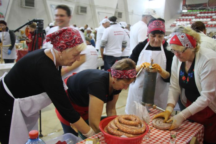 Új lendületet adott a hétvégi kolbászparádénak és káposztafesztiválnak, hogy a szervezők idén több különlegességgel is társították a megmérettetést. Háromszék legrégebbi gasztronómiai rendezvényén ezúttal félszáz csapat próbált szerencsét, a sok visszajáró mellett magyarországi vendégek és kisgyermekek – akik egyébként különdíjat kaptak – is azon dolgoztak, hogy elnyerjék a zsűri figyelmét. A nap végén felső-háromszéki győzteseket hirdettek a Szabó Kati Sportcsarnokban felállított színpadon, a legízletesebb kolbászt ugyanis ozsdolai asszonyok készítették, a legfinomabb töltött káposzta pedig a csernátoni pedagógus hölgyek üstjében rotyogott.