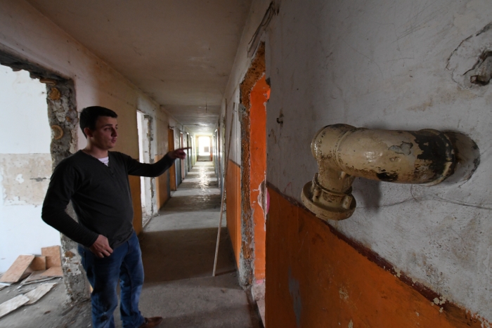 Székely Róbert az egykori szociális lakásokat befogadó emeleten