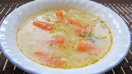 Hozzávalók: 2–3 közepes, zsenge tök (kb. 60 dkg), 2 kisebb krumpli (kb. 15 dkg), 2–3 murok, 1 közepes vöröshagyma, 2 cikk fokhagyma, 1 liter zöldség alaplé (vagy 1 liter víz és 1 leveskocka), 2–3 evőkanál olaj, 2 evőkanál tejföl, 1 dl tej, só, bors, 1 kiskanál kurkumapor, 1 kötés friss kapor, 2 evőkanál liszt. A hagymát és fokhagymát megpucoljuk és apróra vágjuk, majd a felhevített olajon megfonnyasztjuk. A zsenge tököt hámozzuk, kiszedjük a magját és felkockázzuk, a krumplit és murkot is hasonló módon előkészítjük. A zöldségeket a hagymához adjuk, majd néhányszor átkeverve, együtt pároljuk néhány percig, ezután hozzáadjuk a felaprított kapor felét és felöntjük a forró zöldség alaplével. Sózzuk, borsozzuk, kurkumával ízesítjük, majd lefedve 15 percig főzzük. Ezután hozzáadjuk a felkockázott tököt is, és puhára főzzük a többi hozzávalóval. Közben a lisztből, tejfölből és a tejből habarást készítünk, majd hőkiegyenlítéssel a leveshez adjuk, végül ízesítjük a maradék friss kaporral. Ugyancsak Annamária konyhájából kölcsönöztem egy másik ízletes, tartalmas leves receptjét is.