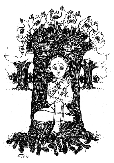 Édesanyám és nagyapám gallyat, száraz bükk- és fenyőágakat gyűjtött, rakták a szekérre, én pedig ivóvizet vittem nekik a Várdomb alatti hűs forrásból, és őriztem a két tehént, Micit és Virágot, amíg az egyik, az otthon hagyott kis borjáért nyugtalankodó Virág nem függetlenítette magát: felcsapott farokkal bebogárzott az erdőbe. Kányádi riadalmas, gyönyörű verse történt meg akkor ott velem, lettem az égtájtalan, úttalan, hatalmas bükkfaerdőben a poéma előtt bolyongó, elveszett lélekké, a vers teremtés előtti káoszának egyik lehetséges víziója: „sírni kéne, énekelni / éjnek lenni / nem is lenni / csak ne kéne beljebb menni… / csak ne kéne lovait kereső / kisgyermeknek lenni…” Nem volt út, és nem volt égtáj, a Kicsibükk szálfaegyenes, gyertyásan álló bükkfái között zokogtam, mint aki örökre elveszett. Nem voltak virágok, pillangók, madarak, csak huhogó kísértetek, ördögök, krampuszok, ökörszemű békák, kígyók, nem voltak napsugárban fürdő lombok, utat mutató ezüstfenyőágak, csak sivatagosan egyforma, ösvénytelen, barna bükkavar, csattogó, fényesen izzó farkas-, medvemorgások, boszorka-ormányok, villogó vadkanagyarak… És bénító, paralitikus, kígyószem tükrébe fagyott félelem, ki úgy állított a zokogás kivégzőosztaga elé, hogy számba tömte az egyetlen szót is, mely megmenthetett volna, befele vérzett, alvadt vérrögökké némult az édesanyámat kiáltó jaj, legfennebb csak egyik fától a másikig visszhangozhatott…