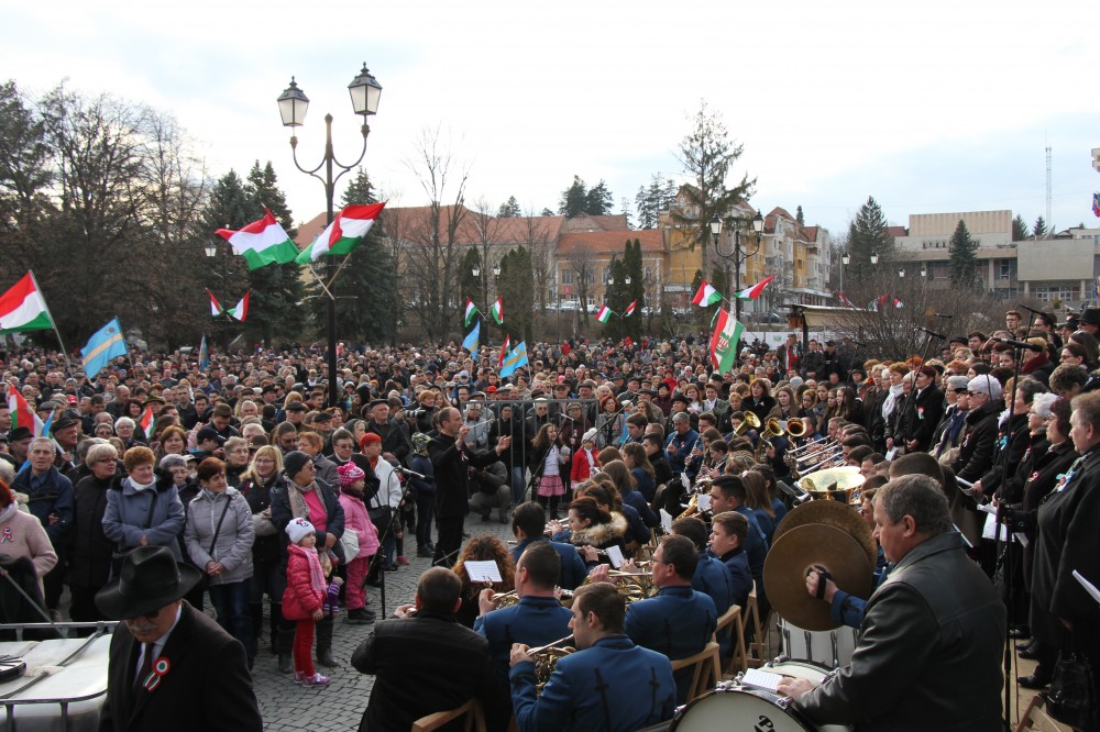 „A jövő Románia számára azt jelenti, hogy minden történelmi régiónak kezébe kell vennie sorsát, elérnie, hogy a legfontosabb döntéseket helyben hozzák meg. Bukarestnek azt is meg kell értenie, hogy száz évvel ezelőtt Erdéllyel egy erős magyar közösség is Romániához került, amelyért akkor felelősséget vállalt. Elvárjuk, hogy akkori vállalásait maradéktalanul teljesítse” – mondotta. Kitért a román médiában tomboló magyarellenességre, tiszteletet követelt a magyarságnak, és elfogadhatatlannak nevezte, hogy a XXI. században, egy európai országban büntetni lehet egy közösséget nemzeti szimbólumainak használatáért. „Ez számunkra elfogadhatatlan, és valahányszor megtörténik, félreérthetetlen jelzést kell küldenünk Bukarestnek: a magyar közösségnek alapvető értékei vannak, amelyek mellett minden körülmények között kitartunk. Kitartunk az elveink, szimbólumaink, önazonosságunk, nyelvünk, kultúránk mellett. Kitartottunk az elmúlt száz évben, és kitartunk rendületlenül a jövőben is” – hangsúlyozta. Szólt arról is, hogy a városközpontot díszítő nemzeti színű szívek felkiáltójelek, a prefektusnak, a szabadságunkat csorbító román hatalomnak jelzik, hogy jogi és adminisztratív eszközökkel le lehet vetetni a magyarság szimbólumait a hivatalok homlokzatáról, meg lehet büntetni a polgármestereket, de nem lehet korlátozni a szülőföldünk iránti ragaszkodást és szeretetet.