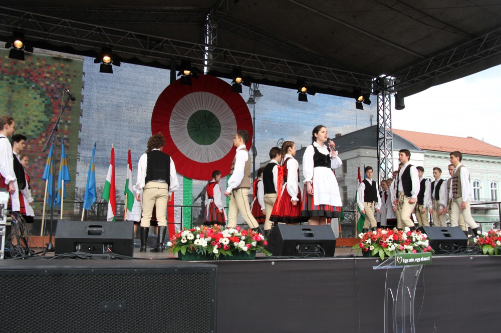 A Székely Mikó Kollégium néptáncosainak előadása után Farkas Balázs konzul olvasta fel Orbán Viktor üzenetét, majd Sorbán Boglárka, az ifjúsági szónokverseny győztese tolmácsolta, mit jelent a fiataloknak március 15.