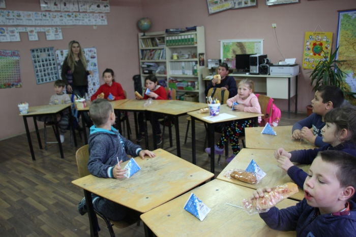 Derűs hangulatban jöttünk ki az elemi iskola épületéből. Szünet volt, s a gyerekek már az ablakból integettek. Szép rend, tisztaság, meleg és mosoly fogadott. A Kézdivásárhelyről ingázó Oláh Erika tanítónő éppen akkor osztotta ki a minden gyereknek kijáró tízórait, a sajtos kiflit és a tejet.