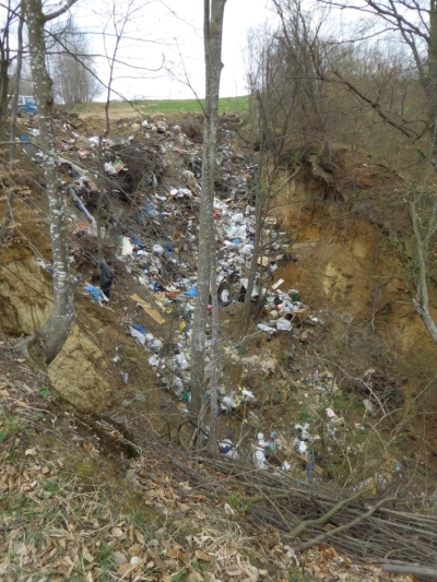 Előbb említett barátom azt mondta, elvisz egy olyan helyre, amilyent elképzelni sem tudok. Amihez képest kismiska az a falu, amelynek határában annyi szemetet láttam. Kíváncsi voltam, mi tudja überelni a Sepsi Zöld Út mentét. Hát újra terepjáróba ültünk. Irány Málnásfürdő, Zalánpatak, aztán tovább Szárazajta felé. A vízválasztóhoz közeledvén, egy kanyarban barátom megállította az autót. Itt van, fényképezzed, mondta.