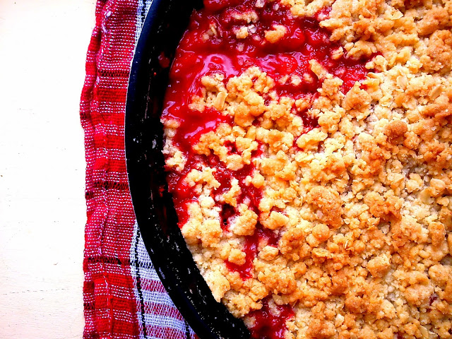 Epres-rebarbarás morzsasüti. Hozzávalók: 250 g liszt, 220 g kristálycukor, 200 g vaj, 100 g zabpehely, fél kg eper, fél kg rebarbara.