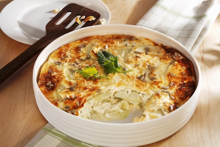 A csőben sült karalábé akár önálló fogásként is megállja helyét, ám húsok – baromfi vagy sertés – kísérője is lehet arra az esetre, ha éppen vendégeket várunk. Előnye, hogy viszonylag gyorsan elkészül, és kevés alapanyagból is finom, laktató ételünk lesz. Négy-öt nagyobb karalábét tisztítsunk meg, csíkozzuk fel, majd forrásban lévő sós vízben néhány perc alatt kissé pároljuk meg. Nem szükséges készre főzni, hiszen az elkészítés a sütőben fejeződik majd be. Egy-két evőkanál vajat felhevítünk majd 3 evőkanál lisztet adunk hozzá. Világos rántást készítünk – közben sózzuk, borsozzuk és szerecsendióval is bőven megszórjuk –, majd folyamatos kevergetés mellett 350–400 ml meleg tejjel besamelmártássá főzzük. A leszűrt és lecsepegtetett zöldséget egy hőálló tálba vagy tepsibe simítjuk, ráöntjük a mártást és megszórjuk reszelt sajttal, forró sütőben pirosra pirítjuk. Az alaprecept tovább variálható, a karalábé előre főzött krumplival, esetleg más zöldségekkel is társítható.