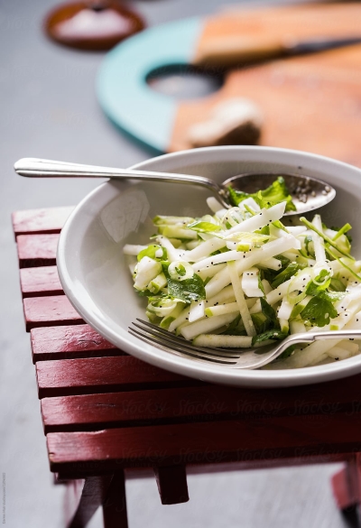 Tavaszi saláta. A ropogós, friss saláták kedvelőinek egyszerű salátát ajánlunk: egy-két zsenge karalábét egy nagyobb almával és egy szál friss murokkal együtt lereszelünk. A hozzávalókat egy tálban lazán összekavarjuk, ízlés szerint sózzuk és borsozzuk, rácsepegtetünk egy kevés citromlevet és olívaolajat. Megszórhatjuk friss, aprított kaporral vagy petrezselyemzölddel, gazdagíthatjuk durvára vágott dióbéllel vagy kevés mazsolával. Önmagában pirítós kenyérrel, grillezett csirkemellhez remek kísérő.