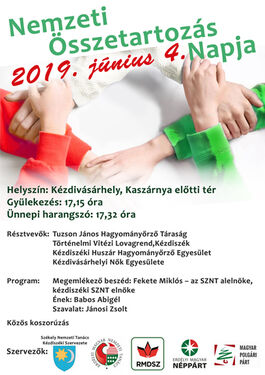 KÉZDIVÁSÁRHELYEN a kaszárnya előtti téren ma 17.15-kor gyülekeznek, a harangot 17.32-kor kongatják meg. Megemlékezőbeszédet tart Fekete Miklós, az SZNT alelnöke, a kézdiszéki SZNT elnöke, énekel Babos Abigél, szaval Jánosi Zsolt. Közreműködnek: a Tuzson János Hagyományőrző Társaság, a kézdiszéki Történelmi Vitézi Lovagrend, a kézdiszéki Huszár Hagyományőrző Egyesület, a Kézdivásárhelyi Nők Egyesülete. A rendezvény közös koszorúzással ér véget.