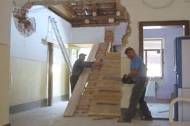 Ide költözik majd az irodák egy része, s gyűléstermet is kialakítanak. Gyergyai Imre alpolgármester szerint a községháza teljes felújítását ez év decemberére, legkésőbb a jövő év januárjára befejezik.