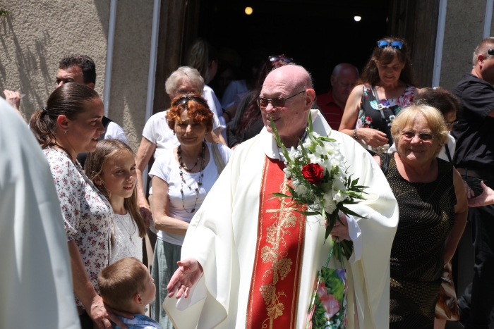 A szentmise végén a 23. zsoltárral köszöntötte az ünnepeltet a plébánia kórusa és a Laudate kamarakórus. Lajos atya elérzékenyülve mondott köszöntet mindenért, két jelen levő testvérének és családjaiknak, a rokonságnak is, hogy egységben és szeretetben segítették. Az ünnepség aranymisés áldással zárult.