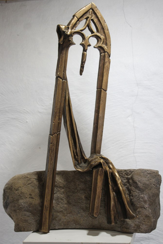 A földszinti teremben Kiss Levente bronzban személyesít meg szobraiban két gótikus ablakkeretet, közrefogva Ábrahám Jakab Töprengő és Alkotás című tusrajzát.