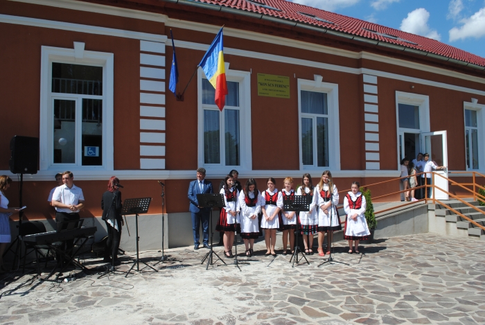 Az iskola új névtábláját Balogh Tibor polgármester és Rancz-Gyárfás Elemér iskolaigazgató leplezte le, Tamás József segédpüspök kért áldást az iskolára, megszentelte a táblát és az épület helyiségeit. A szervezők nevében Jankó Erna mondott köszönetet mindazoknak, akik valamilyen formában hozzájárultak ahhoz, hogy e szép ünnepségre sor kerülhessen. Az eseményt az alkalomhoz illő versek és énekszámok tették ünnepélyesebbé. Délután a helybeli óvodások és iskolások adták elő műsorukat, majd a Perkő Néptáncegyüttes lépett fel.