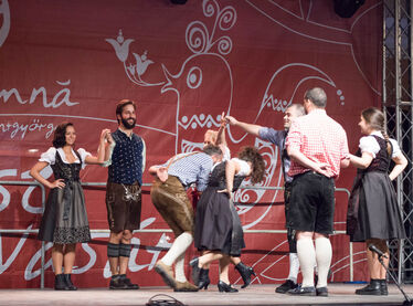 A mai program a színpadon: 11–12 és 14–15 óráig vásártéri zene: Bordó Sárkány; 16 órától néptánc: a Kincsek és a Heveder zenekar; 17 órától Bordó Sárkány-koncert (HU); 19 órától a Junii Brașovului néptáncegyüttes előadása. Szombaton: 11–13 óráig vásártéri zene: Bordó Sárkány; 13.30-tól a Cucii din Moldova néptáncegyüttes előadása; 15 órától A buták versenye – a Cimborák Bábszínház szabadtéri bábelőadása; 16 órától Folker: Eszes Gyurka és az ezmók – koncert mesés játékokkal, 17.30-tól Zoord-koncert (HU); 20 órától Ferenczi György és az Első Pesti Rackák együttes; 21 órától táncház fiataloknak a főtéren.