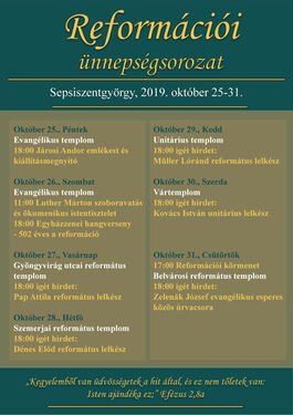 A Romániai Evangélikus-Lutheránus Egyház október 25–26-án Sepsiszentgyörgyön szervezi meg országos reformációi ünnepségét és Egyházkerületi Lelkészkonferenciáját. A rendezvényen Járosi Andor-emlékesttel hajtanak fejet a lelkész, teológus, író emléke előtt, valamint felavatják az evangélikus templom előtti téren Luther Márton egész alakos köztéri szobrát.