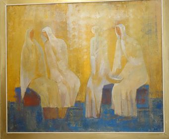 És hogy ellenpontozzunk, ez a művészet meg is szenteli-szentelheti az életet, az embert, az emberi lét csendjét halk, de belülről sugárzó színeivel, szűkszavúságával (Együtt). Tehát eszközeiben változatos, fel is növelhet, el is túlozhat, de le is halkíthat, vissza is foghat.