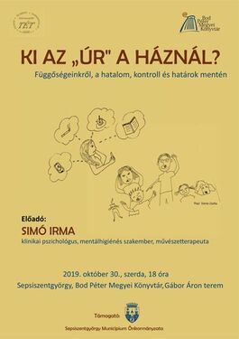Sepsiszentgyörgyön a Bod Péter Megyei Könyvtár Gábor Áron Termében ma 18 órától a Háromszéki TÉT-estek (Tudás – Élmény – Tapasztalat) rendezvénysorozat vendége lesz Simó Irma Csíksomlyón élő klinikai pszichológus, mentálhigiénés szakember, művészetterapeuta. Ki az „úr” a háznál? – Függőségeinkről, a hatalom, kontroll és a határok mentén című előadásában a függőség kialakulásáról, családi háttérről, fiatalok valós és állehetőségeiről osztja meg tudását, tapasztalatát a sepsiszentgyörgyi közönséggel.