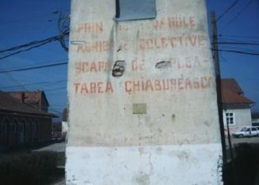 Most Hidvégen kaptuk lencsevégre a központi transzformátor épületének utca felőli falán a mellékelt jelszót: ,,Prin gospodăriile agricole colective scăpăm de exploatarea chiaburească." Magyarul: A kollektív gazdaságok révén megmenekülünk a kulák kizsákmányolástól.