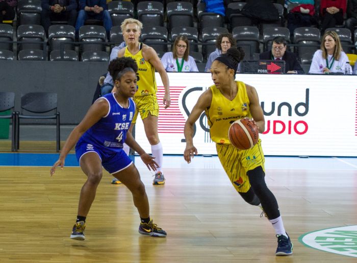 Az első Román Kupa négyes döntőjét játszó Kézdivásárhelyi SE csapat nem kezdte megilletődötten az Aradi FCC elleni meccsét, még annak ellenére sem, hogy Adrienne Webb triplája adta meg a párharc alaphangját. A Maros-parti játékos brillírozott az első percekben, de miután a céhes város csapatának edzője, Farkas Alpár időt kért, lányainak sikerült felzárkózniuk (12–9). A folytatásban is tartották magukat a felső-háromszékiek, s ötpontos hátránnyal zárták az első negyedet (23–18). Kaila Mobleyék a második negyedben is ott loholtak az aradiak nyakában, akik egy adott pillanatban hiába vezettek 14 ponttal, a kék-fehér mezes kosarasaink keményen küzdöttek, és 45–39-es eredménynél vonultak szünetre a csapatok.