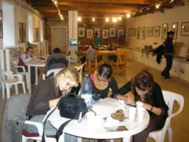 Idén két görög vendégművésszel bővült az Istálló Galériában hétfő óta dolgozó csapat, s végre-valahára a Plugor Sándor Művészeti Líceum diákjai is bekapcsolódtak az amúgy bárki számára nyitott műhelymunkába. Ahol a plasztikra karcolt motívumok, minták a hely szellemét adják vissza, hiszen a tábor egy, a Haszmann-múzeumban tett tanulmányi kirándulással indult, azóta a csernátoni és persze az árkosi házak, utcaképek, épületrészek ihletői lettek az olykor nyakig festékes karcművészeknek, kik táborzárásul vasárnap pontosan délben megmutatják az arra kíváncsi nagyközönségnek addigi műhelyükben, az Istálló Galériában alkotásaikat.