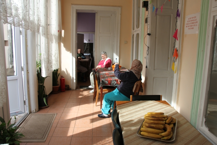 Ebben az épületben egy szobaszerű helyiség tölti be az étkező szerepét, s bár ennek is van külön mosdója, a szoba nagyon kicsi, két összetolt asztalnál étkeznek délben azok, akik fel tudnak kelni az ágyból. Készül az új konyha és az étkezde, valamint egy tágas orvosi szoba, többek között ezek hiányát is kifogásolták a hatóságok.