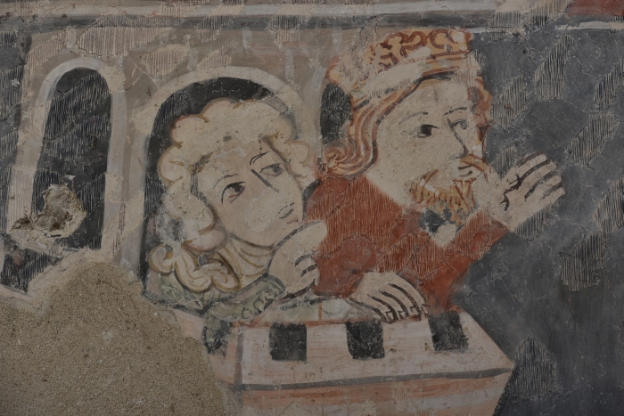 Gidófalva, református templom, Szent György harca a sárkánnyal – falképrészlet. Fotó: Jánó Mihály