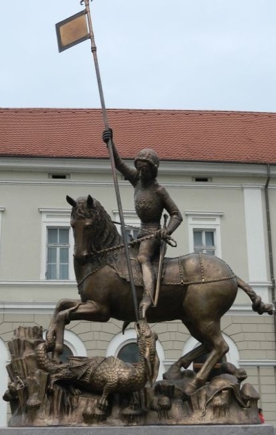 Székelyföldön a sárkányt (démont) legyőző Szent György lovagot a világ más tájaihoz hasonlóan már korán, a középkortól ábrázolták a templomok fal- és oltárképein, valamint az oltárokhoz tartozó szobrászati alkotásokban. Tiszteletének máig tartó hagyománya jeleként áll a Kolozsvári testvérek középkori szobrának egyik másolata Sepsiszentgyörgy főterén. A szoborról közölt korábbi írásomból kiemelek egy kis részletet: „A kis méretű szobor egyedülálló művészettörténeti értékéről, keletkezésének és elhelyezésének körülményeiről könyvtárnyi értekezés született azóta, hogy az 1541. évi prágai tűzvészben történt sérülését egy korabeli krónikás megemlítette. Ekkor mint kútszobor állt a Mihulka-torony tövében, és egy tűzben lezuhanó gerenda a lovag lándzsát tartó karját letörte. A Szent György-szobor kútszoborként történt elhelyezése abból a középkori hagyományból ihletődött, amelyet a Legenda aurea is megemlített: a megmentett leány apja által emelt templom oltárán bővizű forrás fakadt, mely minden beteget meggyógyított, aki csak ivott belőle. Másrészt a műalkotás sokrétű jelentését gazdagítja a talapzaton megformált, kígyókkal, gyíkokkal és békákkal benépesített vízparti táj, amelyben a mérges leheletű sárkány megjelenik. »A leheletével ölő sárkány (...) a járványoknak is megtestesítője, s a mocsári hüllők a szövetségesei« – figyelmeztet az ábrázolt állatok jelentésére Marosi Ernő, aki ezáltal konkrétan a pestistől való félelemre és egyben Szent György oltalmazó szerepére utal. »1373-ban a fekete halál élménye mindennél elevenebb – mondja –, s a pestis visszatérései gondoskodtak arról, hogy a rettenet ne menjen feledésbe!«” (Sárkányölő Szent György, Háromszék, 2013. április 20.)