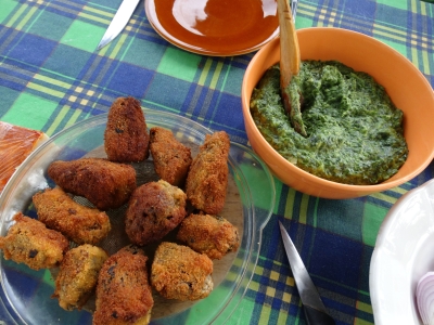 A ropogósra sütött gombákat spenótfőzelékkel tálaltuk fel. Jó étvágyat