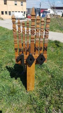 Virtuális körsétánkat Balázs Antal faragóműhelyében kezdjük, kora délelőtt Anti bácsi már jócskán beleizzadt a munkába. De nem azért, mert a 84-et elrúgta, hanem mert már reggel óta üti a vésőt. Ezúttal is különleges alkotáson dolgozik: trianoni emlékművet készít Csólyospálosra, arra a kis magyarországi településre, ahol már több munkája áll közterületen. Nyolc kopjafából fog állni az emlékmű, a középső, legmagasabb az anyaországé, körülötte a leszakított részek: Délvidék, Muravidék, Drávaszög, Őrség, Felvidék, Kárpátalja, Erdély emlékoszlopai, mindenik magasságát az ott élő magyarok lélekszáma határozza meg. A kopjafák tövénél „egy iszonyúan nagy”, fekete színű százas szám lesz elhelyezve, utalva a kerek évfordulóra. Ugyancsak trianoni emlékművet készít Anti bácsi Szotyorba is, ez egyszerűbb kivitelezésű lesz. És – bár ezt nem látjuk, hiszen telefonon értekezünk – jónéhány kifaragott kopjafa vár még az eresz alatt, hogy amikor eljön annak az ideje, felállíthassák megrendelőik temetőkben, templomok tövében.