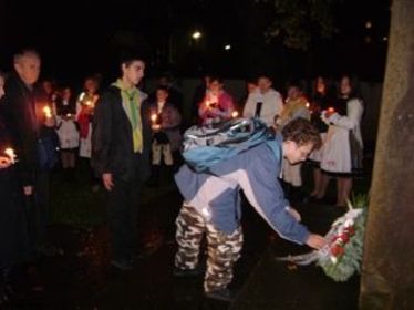 A kovásznai központi református templom kertjében tegnap este a Magyar Polgári Párt és az RMDSZ helyi szervezetei, illetve a Székely Tanács hívására szomorkás időben közel kétszázan emlékeztek egy-egy szál gyertyával az 1848—49-es forradalom és szabadságharc vértanúira.