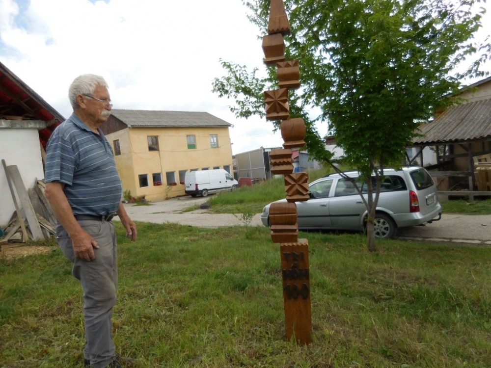 Eredeti, ezermesteri észjárásra valló a megoldás is, ahogyan Anti bácsi a kopjafát felépítette – apropó, ezermester. Még a szükségállapot idején egy újságcikkben szólaltattam meg három ügyes kezű székely atyánkfiát, mivel töltik idejüket. Köztük volt Balázs Antal is, kire néhai Sylvester Lajos ragasztotta a kopjafadoktori címet: Anti bácsi épp egy Magyarországra megrendelt trianoni emlékművön dolgozott akkor, az újságban rövid leírást, illetve fényképet is közöltünk a közös talapzatból orgonasípszerűen kiálló kopjafákról – és lett is visszhangja az írásnak. No, nem az, hogy Anti bácsi újabb rendeléseket kapott olyan vagy hasonló emlékművekre, hanem egy furcsa látogatás: nyakkendős, kékszemű úriember kereste fel műhelyében, üdvözölte, mint régi jó ismerősét, aztán kérdezgette erről-arról, hogy szolgál az egészsége, hogy min dolgozik éppen, s Anti bácsi átlátva a nagylikú szitán, meg is mutatta neki a kopjafakompozíciót. Az úriember egy-két szóval méltatta Anti bácsi leleményességét, aztán szívélyesen búcsúzott. Nem volt ez rosszindulatú látogatás, dehogyis. Csupán annyi lett az eredménye, hogy Anti bácsi a hétszeresen megtört kopjafát fel sem ajánlotta itthoni köztérre való kihelyezésre.